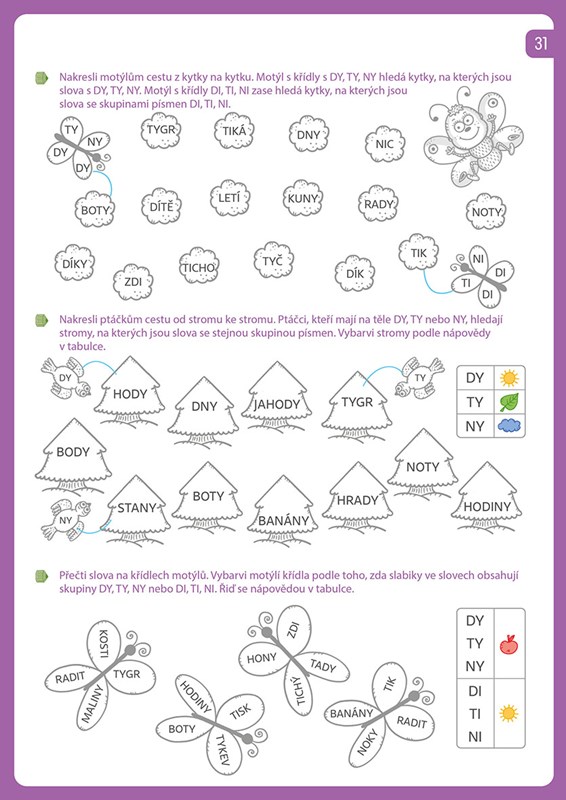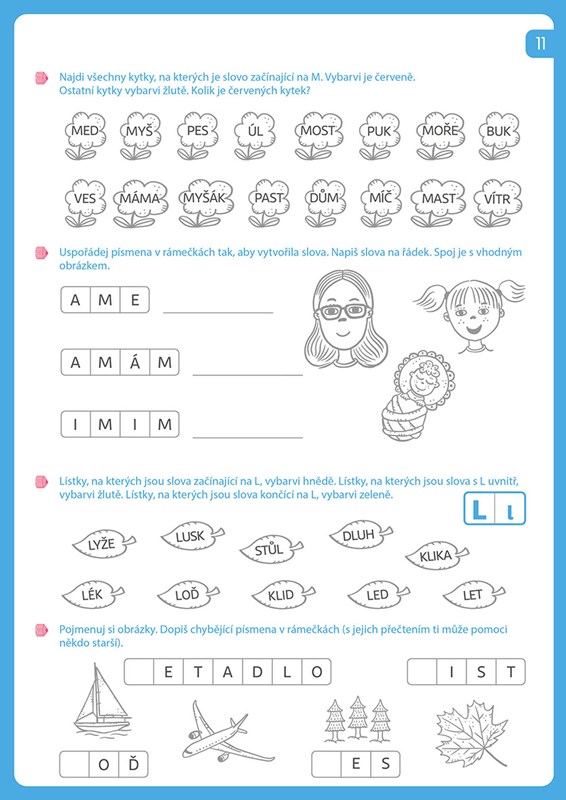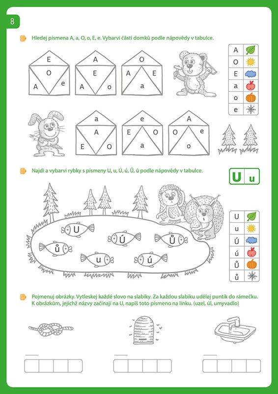 Zvířátka si otevřela svou školu přímo uprostřed lesa a nadšeně se pustila do učení. Ráda by poznala všechna písmenka, naučila se číst a psát – a ty se k nim můžeš přidat! V tomto pracovním sešitě na tebe čeká spousta úkolů a hádanek s písmenky, slabikami i větami, díky kterým se naučíš lépe číst i psát.