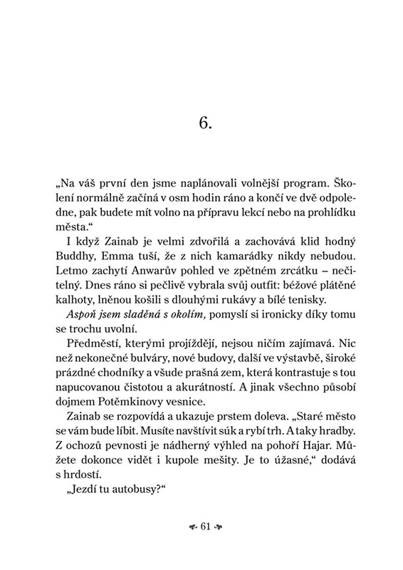 Emma, která pracuje jako masérka v jednom z bretaňských center thalassoterapie, přijme nabídku vyškolit personál luxusního wellness centra v Ománu. Exotická země ji zcela okouzlí, stejně jako šéf resortu, syn vlivného ministra. Neskutečně přitažlivý muž však za svým okouzlujícím úsměvem skrývá nejedno tajemství – a Emma se tak ocitá uprostřed smrtelně nebezpečných politických intrik. Začíná hra na kočku a myš plná pronásledování, nástrah a nečekaných zvratů. Emma se však nehodlá stát snadným terčem…