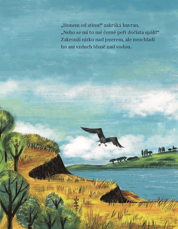 To je ale horko! Myška, liška a havran padají vedrem. Veverka ví, co dělat. Hop do studeného jezera! Ostatní váhají, nechtějí si namočit kožíšky. Ale ouha, veverka má potíže, co teď? Letní obrázková knížka nejen pro všechny, kdo se rádi cákají ve vodě.
