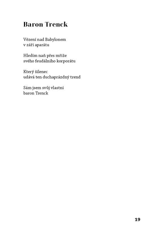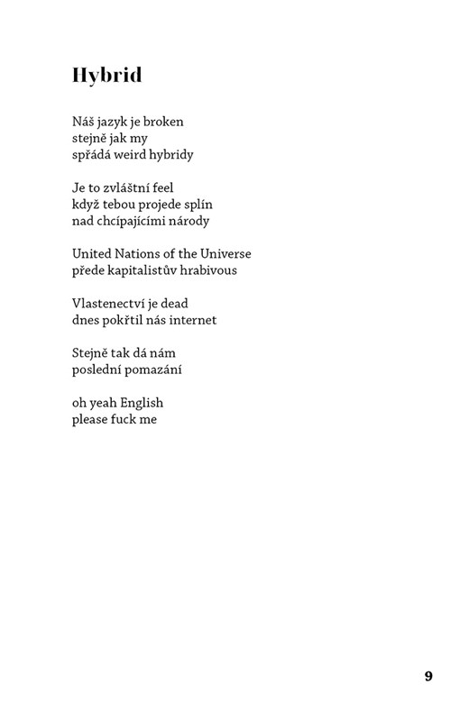 Sbírka poezie o vrtkavé naději. Zoufalství skryté za pozlátkem blahobytu. Tonoucí šílenství chytající se stébla. Ušlápnuté světlo na konci tunelu.