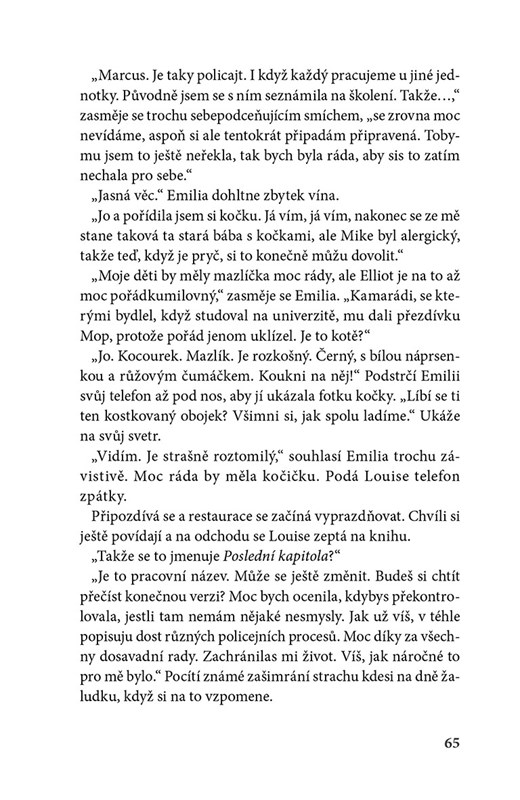 Emilia Wardová žije na poklidném předměstí Londýna. Na první pohled zcela obyčejná manželka a matka dvou dětí je ale slavná spisovatelka. Právě když píše desátý díl své detektivní série, nabere její život nečekané a nebezpečné obrátky: v realitě se totiž odehraje scéna z její knihy. A potom někdo zemře stejnou smrtí jako oběť v knize, kterou zrovna dokončuje. Proč jí tohle někdo dělá? Kdo může vědět, o čem píše? A jak dlouho potrvá, než pachatel zinscenuje finální zápletku jejího temného příběhu?