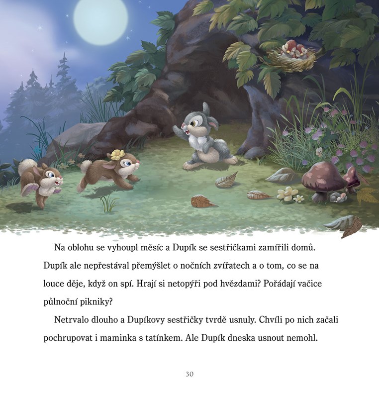 Přečtěte si s dětmi o nočních dobrodružstvích, která zažívají hrdinové od Disneyho a Pixaru! S malou mořskou vílou Ariel prozkoumáte tajuplná světla na dně oceánu, vydáte se pozorovat hvězdy s kolouškem Bambim, pomůžete hračkám zachránit ztraceného kovboje Woodyho nebo objevíte kouzlo táboření s myšákem Mickeym. Vychutnejte si společné chvíle u pohádek na dobrou noc a proměňte usínání v nejkrásnější okamžiky celého dne.