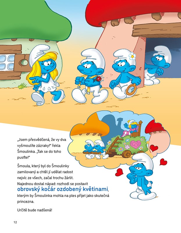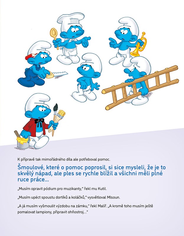 Pojďte s námi na úžasný výlet do světa Šmoulů! Pomůžeme Šmoulince vybrat krásné šaty, poznáme Silákova největšího soupeře, zjistíme, s čím se potýká Kýchal a s kým se spřátelil Fešák. A to vše třeba chvilku před spaním! Prostě pět minut čtení, které vás dostane do šmoulovaté nálady!