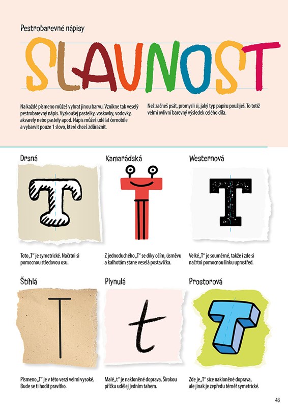 Myslíte si, že slovo „psaní“ označuje jen školní předmět? Omyl! Tvorba písmen a nápisů se pro vás díky této knize stane velkou kreativní zábavou.