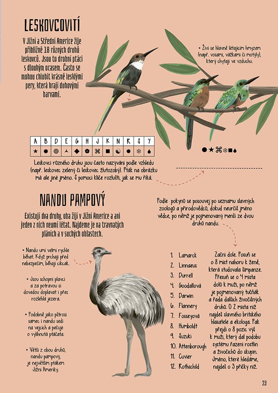 V bohatě ilustrované knize najdeš velkou snůšku mazaných hádanek, tajných šifer, rafinovaných křížovek a dalších zapeklitých úkolů, které jsou doplněny o spoustu „opeřených“ zajímavostí. Roztáhni křídla, vzlétni do oblak a objevuj z ptačí perspektivy!