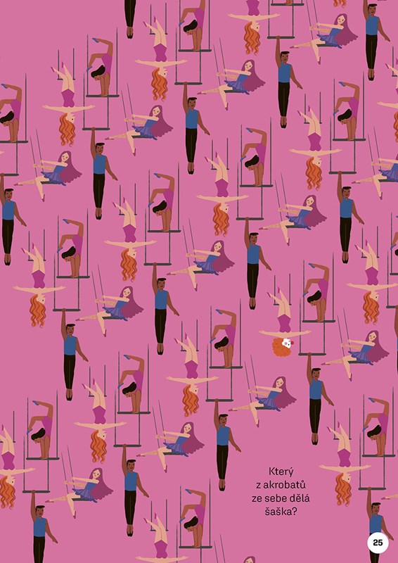 Podívej se na pestrobarevné stránky hemžící se lidskými postavičkami, legračními zvířátky nebo roztodivnými předměty! Dokážeš na každé z nich najít obrázek, který se od ostatních liší?