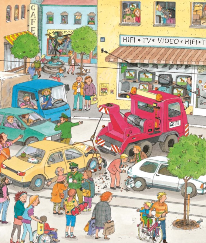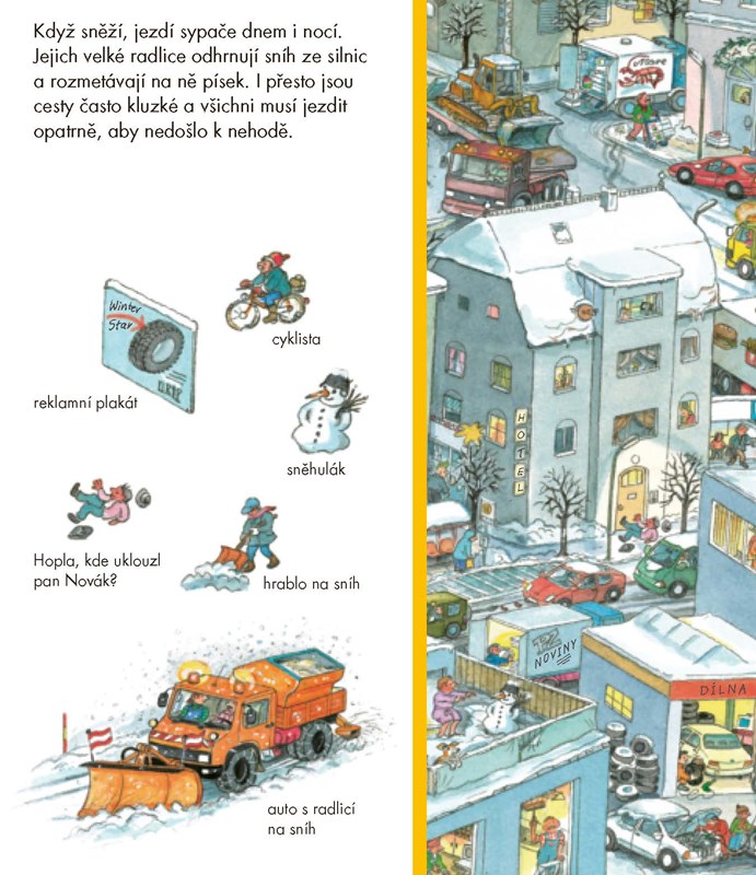 Kde jsou různá vozidla, tam je stále co objevovat. Chceš sledovat při práci mix na beton, hasičské auto nebo odtahovku? A najdeš na velkých ilustracích všechny scény a auta?