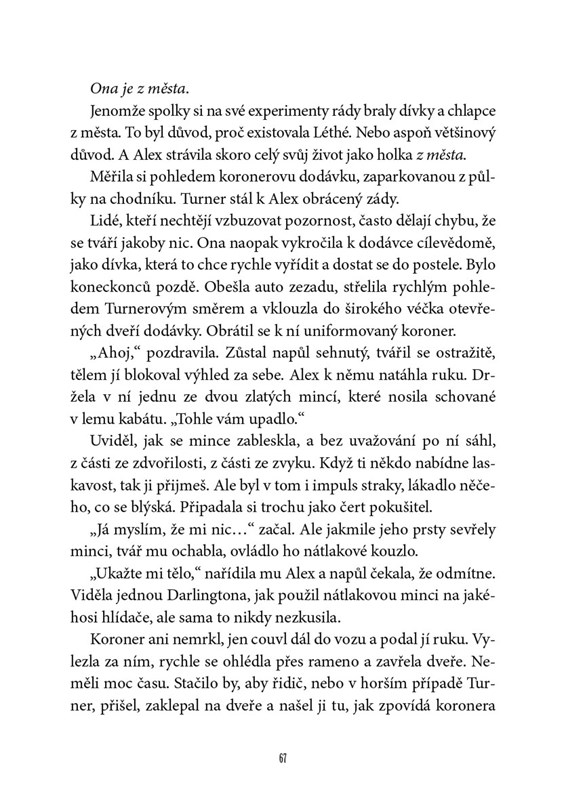 Když v kampusu najdou mrtvou dívku, ona je jediná, kdo nevěří líbivě učesanému vysvětlení, se kterým přišla policie. Alex totiž moc dobře ví, že tajné spolky jsou hrozivější a podivnější, než si kdo vůbec umí představit. Zahrávají si se zakázanou magií. Oživují mrtvé. A jejich kořistí se někdy stávají i živí…