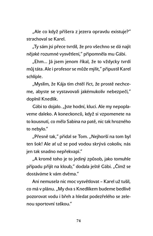TKKG se těší, jak si užijí léto u místního jezera, jenže se stane něco strašného. Několik plavců je během koupání napadeno! Lidé jsou vyděšení a stopy po kousnutí ukazují na přítomnost nebezpečného predátora. Jak se ale mohl do jezera dostat? Přišel čas vypátrat, jak to je…