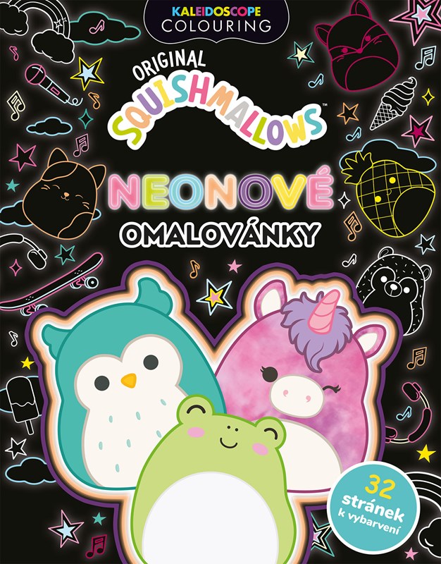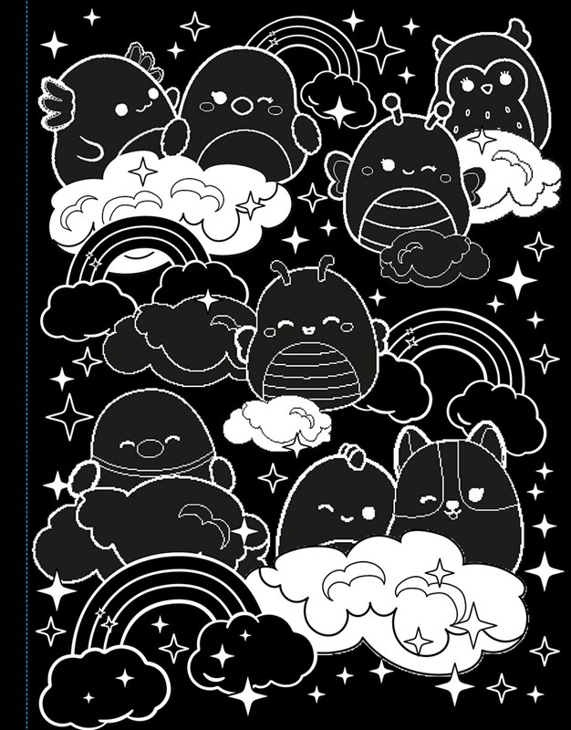 Je tu heboučká parta Squishmallows! Vezměte zvýrazňovače a oživte černé stránky těmi nejzářivějšími barvami! Tyhle skvělé omalovánky naruby vás zaručeně budou bavit!