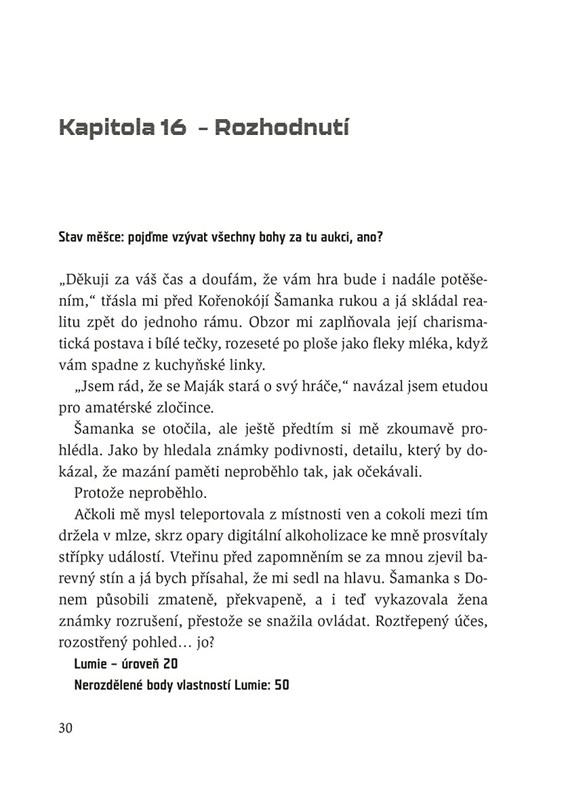 Jedinou jistotu Michaelovi dodává bludička Lumie. Leveluje proti logice kódu a dokazuje tak, že se Mýtina možná změnila víc, než očekával. A nejen samotná hra, také její obyvatelé a hráči…