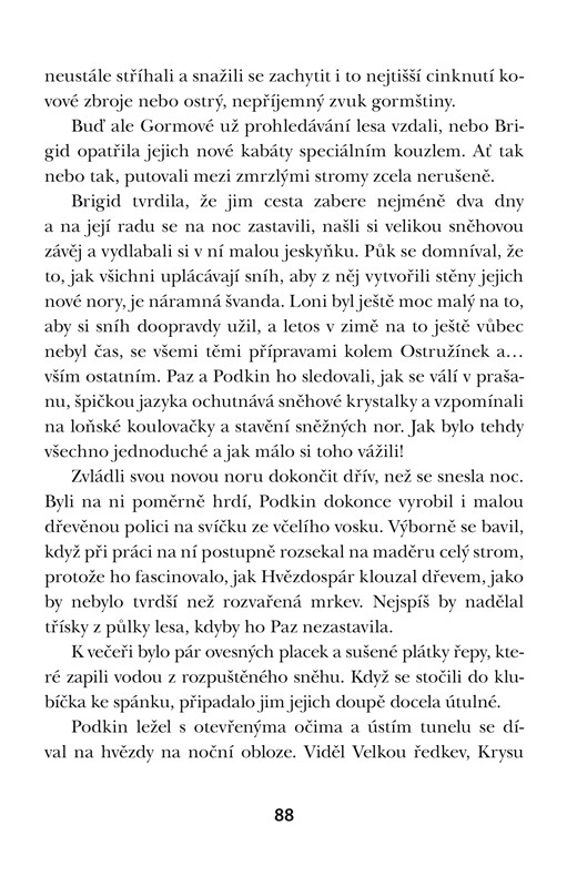 Kdo byl Podkin Jednoouško? Hrdina, o kterém si králíci v celých Pěti říších vyprávějí legendy. Neohrožený válečník, jenž dokázal vyhrát bitvu s nepřítelem tak strašlivým, že si ho ani nedokážete představit! Ale máte štěstí, do Trnkové nory právě z temné noci přichází potulný bard a začíná líčit napínavý příběh o tom, jak se Podkin, syn Lopkina ze Všedninkové nory, stal z rozmazleného a líného králíčete tím nejstatečnějším bojovníkem. Všechno začalo tehdy, když jeho noru přepadli krutí Gormové…