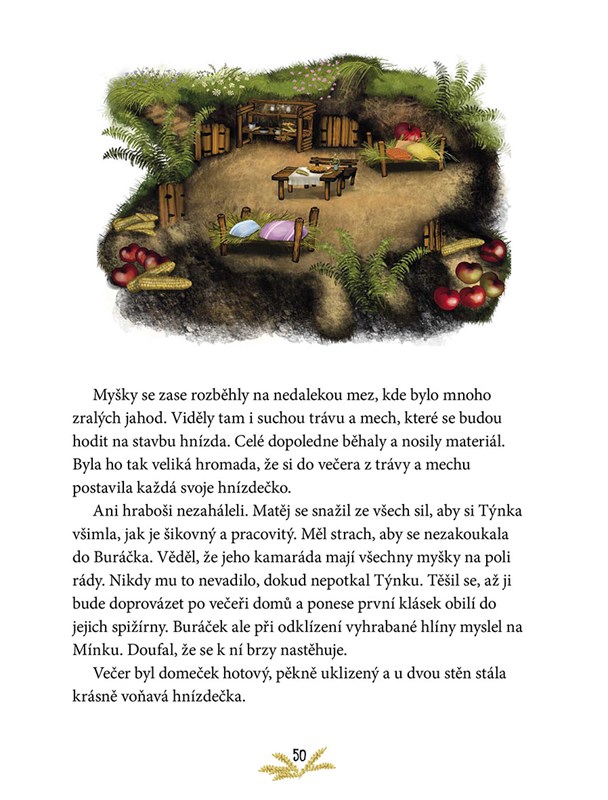 Veselé vyprávění o životě myšek a dalších zvířat, která žijí na poli, od autorky oblíbených edukativních příběhů o Včelce Medušce.