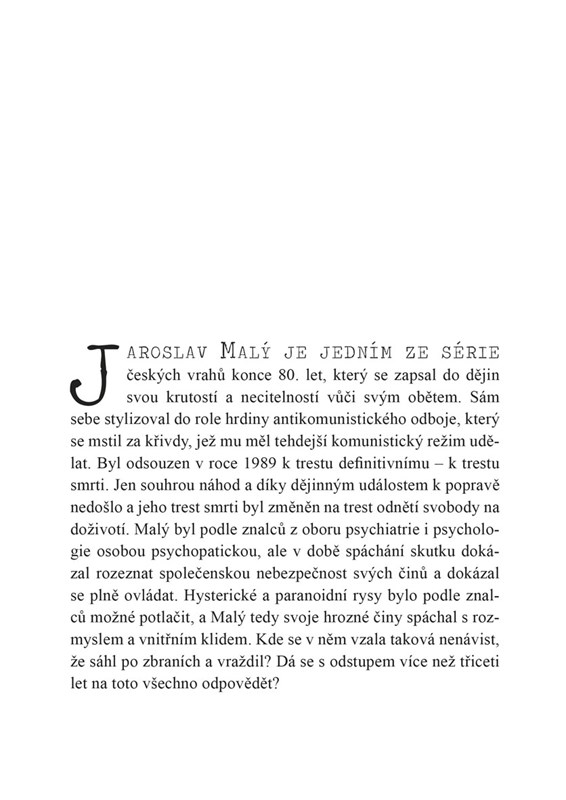 Jaroslav Malý byl posledním člověkem v Československu, nad kterým byl vynesen rozsudek smrti – a zároveň jedním z mála, na kom nebyl vykonán. Společenské otřesy roku 1989 mu zachránily život, ale před vlastním svědomím a kriminální minulostí stejně utéct nedokázal. Tato mrazivá true crime rekonstrukce sleduje osud muže, který bez zábran kradl i zabíjel, až do okamžiku, kdy se jeho příběh protnul s dějinami. Autentický portrét brutálních činů i přelomové doby nabízí temný pohled do zákoutí československé kriminalistiky – a připomíná, že spravedlnost někdy přichází v jiné podobě, než bychom čekali.