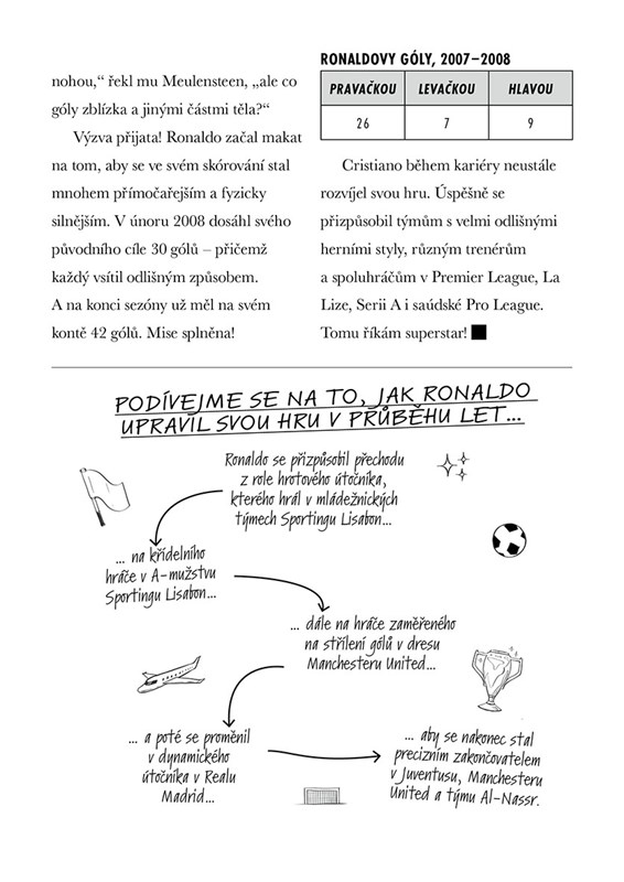 Dva fotbaloví velikáni a jedna zásadní otázka. Kdo z nich je skutečný GOAT, tedy nejlepší fotbalista všech dob? Věčné téma všech fanouškovských diskusí o fotbalu. Tato zábavná a napínavá kniha tě provede úžasnými kariérami Lionela Messiho a Cristiana Ronalda – od úplných začátků až po rekordy, které přepsaly dějiny. Dozvíš se spoustu zajímavostí, porovnáš jejich statistiky, získané trofeje, herní styl i největší momenty na trávníku. A nakonec možná najdeš odpověď na otázku, kterou si kladou fanoušci po celém světě.