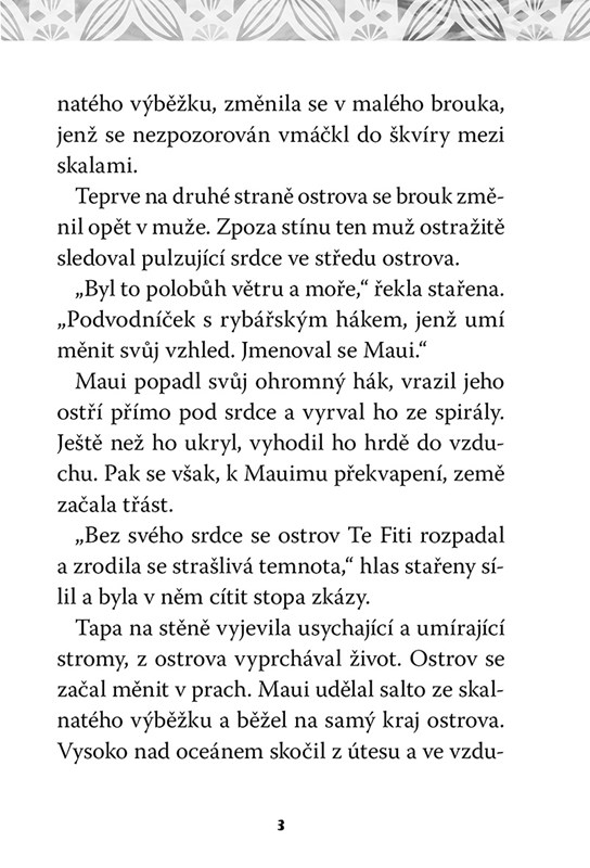 Ve starodávném světě Oceánie se dívka jménem Vaiana vydává na moře, aby našla bájný ostrov. Během své neuvěřitelné cesty se spojí s legendárním polobohem Mauim a společně procestují krásný, ale nebezpečný širý oceán a pokusí se najít srdce Te Fiti a navrátit ho tam, kam patří. Kniha vypráví mladým čtenářům celý poutavý příběh a nabízí osm barevných obrázků ze známého filmu. Edice Pohádkový román nabízí mladým čtenářům první texty k souvislejšímu čtení, ale současně dbá na snazší jazykovou formu. Vstřícný krok vůči mladým čtenářům představuje rovněž barevná příloha.