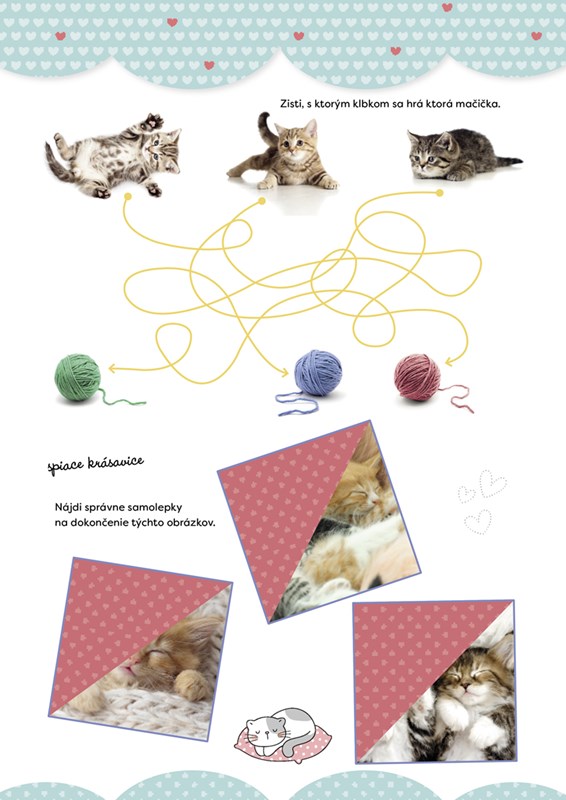 Deti milujú mačiatka! V tomto zošite plnom veselých obrázkov nájdu množstvo aktivít a krásnych samolepiek, s ktorými si užijú skvelú zábavu. Môžu vyfarbovať, dopĺňať, pátrať v bludiskách, hľadať rozdiely, hádať a nalepovať.