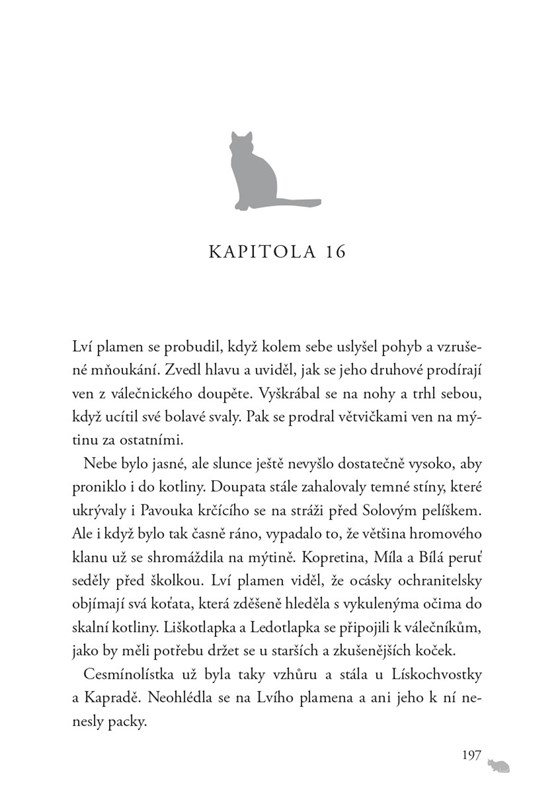 Hromový klan rozdělí záhadná vražda, ale vznáší se nad ním i další tajemství. Sojčipírko, Cesmínolístka a Lví plamen stojí na prahu šokujícího odhalení – kdo jsou doopravdy jejich rodiče? Trojici sourozenců čeká cesta plná lží, tajemství a porušování válečnického zákoníku. Klanové kočky se obrátí proti sobě a jeden další válečník může být navždy ztracen…