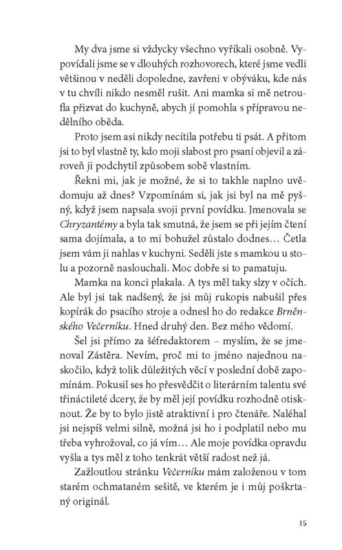 Když se zastaví tělo, z mysli se vynoří proud vzpomínek. Sama je už v seniorském věku, ale pořád myslí na svého otce. Jednou se mu rozhodne napsat dopis – přímo do nebe. Jenže druhý den se stane něco, co ji odvede od pouhých vzpomínek na idylické dětství. A tak se začíná odvíjet konfrontace s minulostí, z níž vyplouvají pohnuté životní příběhy. Příběhy, které se stále opakují. O lásce, touze i zklamání, o síle ženského přátelství, o opouštění, návratech i odpuštění, ale taky o smíření s nemocí a se smrtí. Protože ani ta nemusí znamenat definitivní konec…