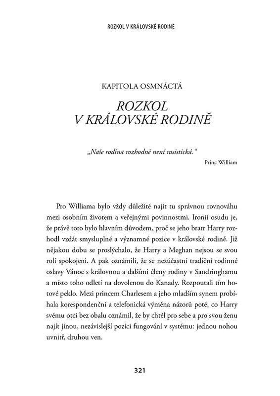 Princ William – vévoda z Cambridge, budoucí král, milující manžel a otec. Zapálený bojovník za ochranu životního prostředí i destigmatizaci duševních problémů. Navenek působí jako klidný a odhodlaný služebník koruny, v soukromí však dokáže dát průchod i zcela odlišným stránkám své osobnosti. Odhalte všechny tváře moderního monarchy! Odborník na anglickou královskou rodinu Robert Jobson v této biografické knize zpracoval kompletní příběh muže, který přepisuje dějiny monarchie.