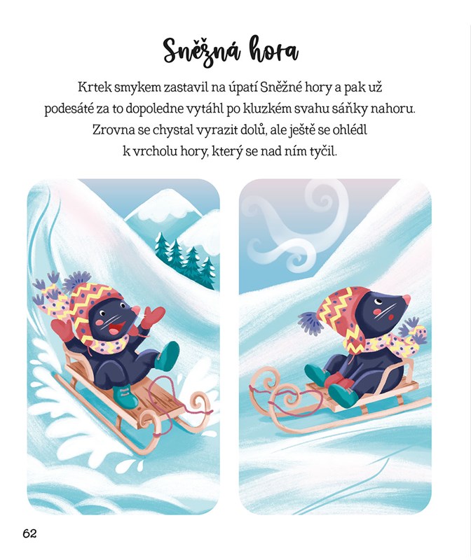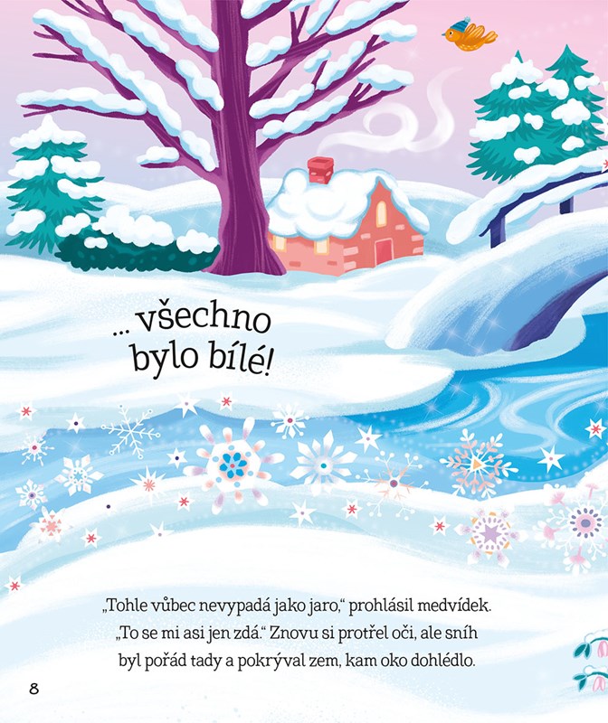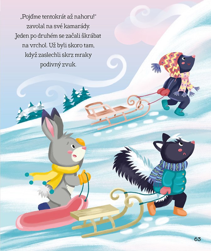 Knížka Zasněžené příběhy o zvířátkách obsahuje 11 příběhů se zvířátky v hlavní roli. Malí čtenáři spolu s kapitánem mrožem dobruslí na zimní piknik, ochutnají báječné sněhové poháry paní tučňákové, zjistí, kdo zvítězil v pletařské soutěži, a s pejskem si zvednou náladu plážovou party na ledu. Krátká vyprávění doprovázená roztomilými celostránkovými ilustracemi jsou vhodná pro začínající čtenáře i pro menší děti, kterým je budou předčítat rodiče. Zimní téma přímo vybízí ke čtení pod teplou dekou za dlouhých zimních večerů, ale kouzelné příběhy jistě potěší i kdykoli jindy během roku.