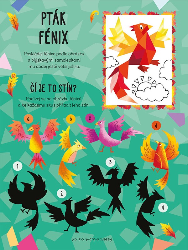 Samolepkové knížky z této edice obsahují 12 obrázků, ze kterých si můžeš vytvořit vlastní umělecké dílo. Nejprve z přiložených samolepkových dílků sestav hlavní motiv, třeba květinovou vílu, jednorožce nebo bájného fénixe, a zbytek obrázku dotvoř pomocí pastelek. Tím ale zábava ještě nekončí. V knížce tě čeká i řada poutavých úkolů, jako bludiště, obrázkové sudoku, hledání rozdílů nebo počítání pomíchaných věcí, u kterých se uplatní nejen šikovné ruce, ale i chytrá hlavička.