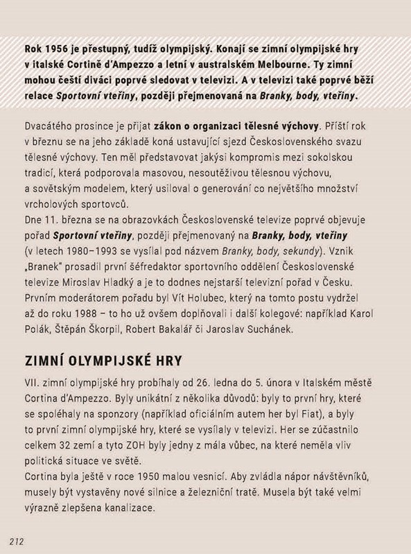 V Italské Cortině d´Ampezzo se uskuteční zimní olympijské hry – první, které přenáší televize –, v australském Melbourne se koná letní olympiáda – pro změnu první na jižní polokouli. Americká filmová hvězda Grace Kelly si bere monackého knížete Rainiera, Marilyn Monroe se vdává za dramatika Arthura Millera, Elvis Presley vládne žebříčkům hitparád a do Prahy se zpožděním způsobeným suezskou krizí dorazí kokosy na předvánoční trh.