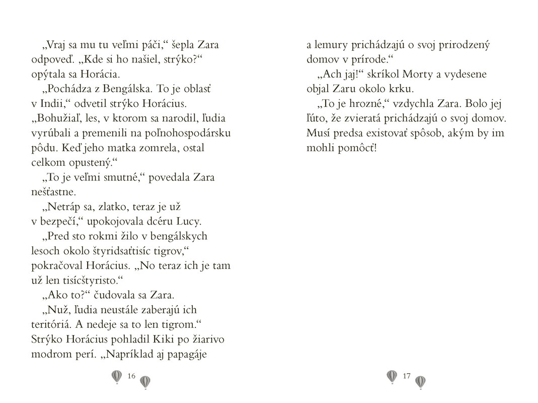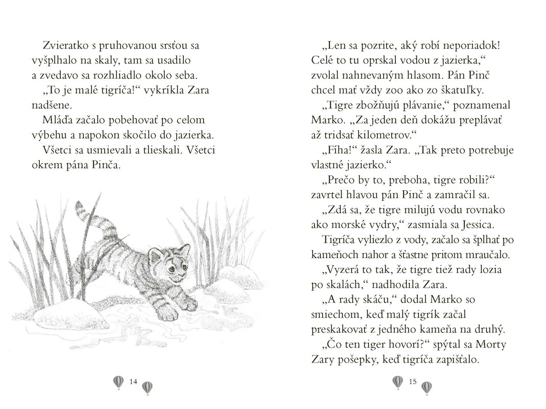Zoo strýka Horácia sa opäť rozrástla o nový prírastok a Zara je nadšená. Rozkošný malý tigrík sa má k svetu a najšťastnejší je, keď sa má s kým rozprávať. Jazyk sa mu doslova nezastaví, a to ani v noci, keď chcú ostatné zvieratá spať. Podarí sa Zare vymyslieť spôsob, ako všetkým pomôcť?