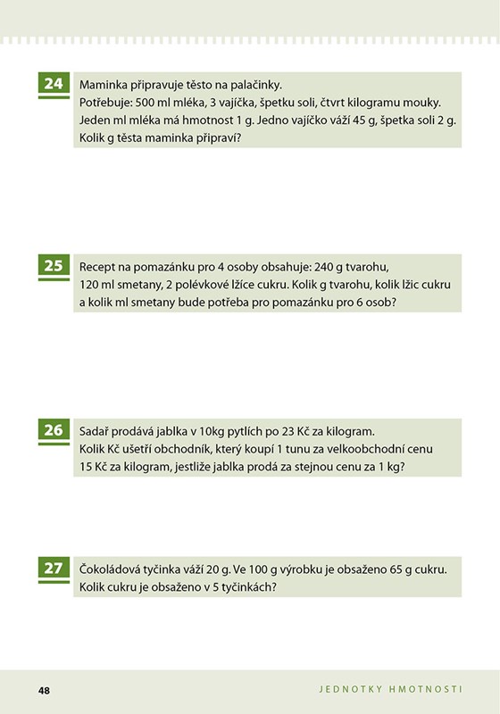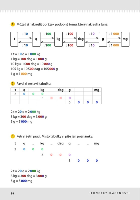 Kniha ukazuje možnosti, jak si znázornit a tím i snadněji zapamatovat a převádět jednotky délky, hmotnosti, obsahu, objemu a času. Dítě si pak může vybrat tu, která mu nejvíc vyhovuje nebo si vymyslí vlastní pomůcku.