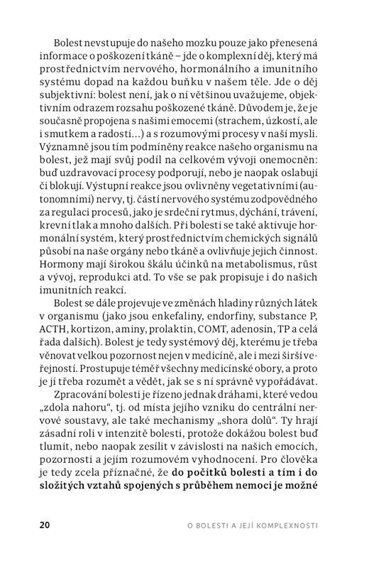 Ačkoliv málo lidí na bolest umírá, mnoho lidí umírá v bolesti a ještě více s bolestí žije. Bolest prostupuje naše každodenní životy a my si s ní musíme umět poradit tak, aby se nestala onemocněním a ve svých důsledcích nás nepoškozovala. Někdo snese stejnou bolest bez povšimnutí, pro jiného může být zatěžující až zničující...