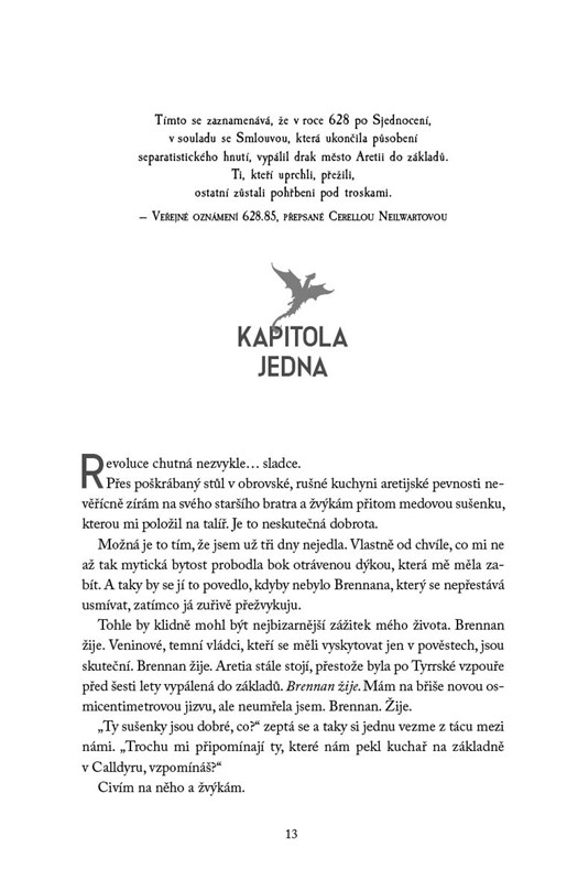 Všichni, včetně Violet samotné, očekávali, že během prvního ročníku na Basgiathské válečné akademii zemře. Přežila, ale skutečný výcvik – brutální a extrémně vyčerpávající – je teprve před ní. A spolu s ním i výzva v osobě nového zástupce velitele, který si dal jediný cíl – ukázat jí, jak vypadá absolutní bezmoc. Violet se už naučila, že odhodlání přežít a odvaha měnit pravidla dokážou mnohé. Bude to ale stačit, když ví, že Basgiath ukrývá prastaré tajemství, které může všechny a všechno zničit?