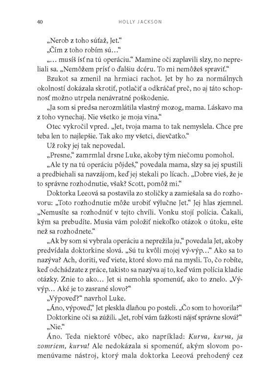 Jet sa nikdy nepovažovala za niekoho, kto by mal nepriateľov. Teraz však začína všetkých vidieť v inom svetle: svoju rodinu, bývalú najlepšiu priateľku, z ktorej sa stala jej švagriná, aj svojho ex-priateľa.