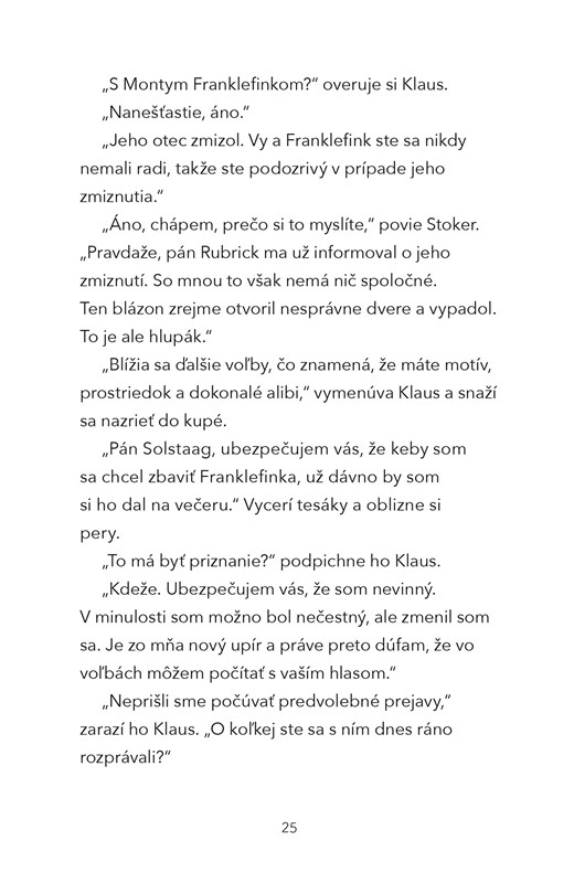 Mali by ste vypočuť Franklefinkovho úhlavného nepriateľa Bramwella Stokera, alebo niečo skrýva jeho kolegyňa Sandra Rigmarolová? Má trpasličia garda hrôzostrašné tajomstvo, alebo sa proti Franklefinkovi nečakane obrátila jeho strašidelná manželka? Rozhoduješ TY!