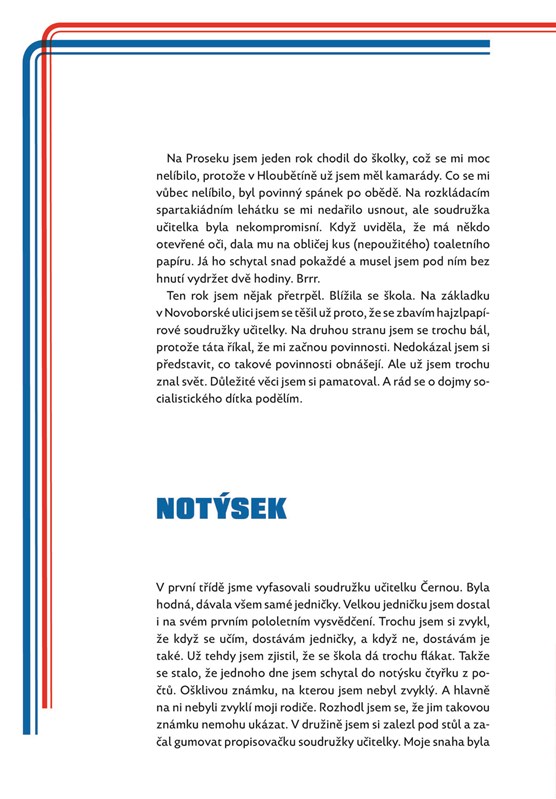 Co jsme nosili na sobě, kam se chodili bavit a jaké bláboly nám ve škole vtloukali do hlavy. Ale také, jak jsme se snažili bolševikovi škodit nebo ho alespoň oblafnout. O tom všem je tato knížka. O vůli přežít a stát se a zůstat svobodnými lidmi.