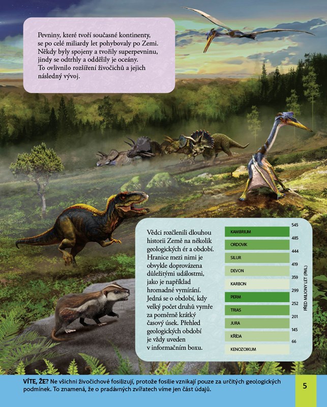 Od počátků života přes dobu dinosaurů až po vzestup savců! Tato fakty nabitá encyklopedie obsahuje to nejdůležitější, co potřebují malí školáci vědět o pravěkých zvířatech. Dozví se nejnovější poznatky o obávaném T-rexovi, poznají největšího tvora, který kdy létal nebo obrovského býložravce, který byl vyšší než dnešní žirafa.