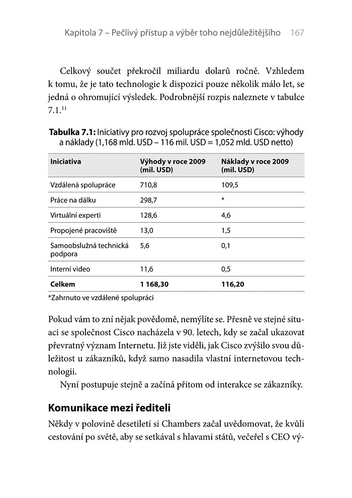 Společnost Cisco navíc představuje pádný důkaz, že tato jednoduchá, ale o to zásadnější myšlenková konstrukce bez potíží funguje. Autor vám samozřejmě také napoví, jak ji lze použít v jakékoli firmě či organizaci, tedy i v té vaší.