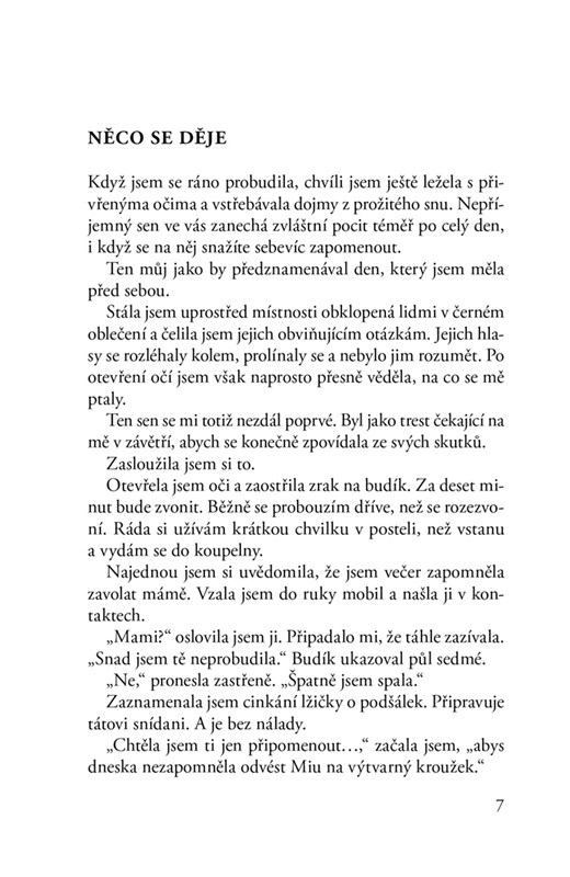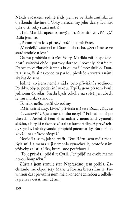 Katarína Gillerová na osudech několika postav vypráví o tom, že každý má o spokojeném životě jinou představu. Svobodná matka Livie se ve vzpomínkách vrací k domku u jezera, kde prožila první lásku, chvíle štěstí i dramatické události, které přiměly celou její rodinu zdánlivě idylické místo náhle opustit. Po dvanácti letech ji za příbuznými a přáteli, s nimiž musela zpřetrhat vztahy, přivede hrozba prozrazení tajemství, které ji spojuje se spolužáky. Po společném setkání ožívají vzpomínky na časy, kdy se Liviiny představy o štěstí začaly hroutit. Zvolila si totiž náročnou a pro mnohé nepochopitelnou cestu. Před minulostí však nemůže utíkat věčně. Kdo je otcem její dcery? Podaří se jí konečně najít odpovědi na otázky, jimž se celé roky vyhýbala?