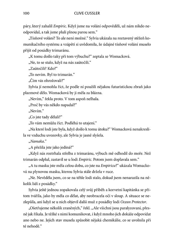 Když se na moři strhne boj o kuvajtský tanker, Juan Cabrillo a jeho tým objeví ještě daleko větší hrozbu: do rukou teroristů se dostala nebezpečná chemická zbraň, která může usmrtit miliony lidí. Jednou z obětí smrtícího jedu se stane i člen posádky Oregonu a jediná šance na jeho záchranu vede přes nebezpečnou honbu za pravdou, v níž se prolínají dávná tajemství i moderní technologie. Cabrillo je odhodlán najít protilátku dřív, než bude pozdě, proti němu však stojí nemilosrdný protivník. Napínavá jízda od první do poslední stránky pro fanoušky dobrodružství, kde jde o všechno. A nikdo není v bezpečí…