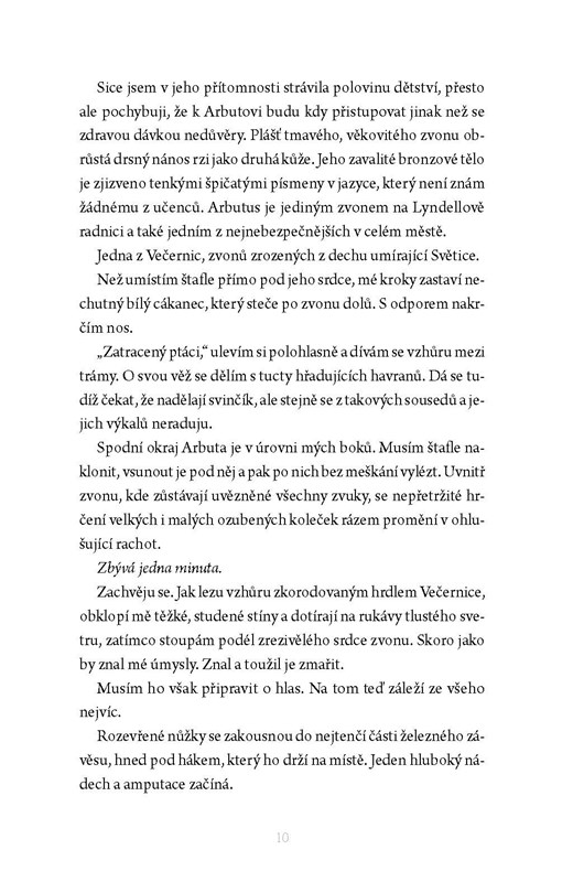 Město Vaiwyn postavili Světci, kteří jsou už dávno pryč – ale město pořád dýchá a krvácí. Strážkyně Mina ví lépe než většina ostatních, že její péče o jeden ze zvonů je zcela klíčová. Rodina Straussových si tuto povinnost předává už tisíc let. Hlas Večernice nikdy nesmí zaznít, nebo probudí dřímající zlo, démona Zkázu.