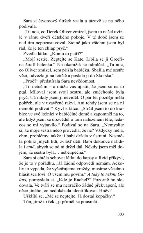 Když se všichni tři začnou zabývat minulostí mrtvého muže, zjistí, že naposledy byl viděn na luxusním večírku, kterého se zúčastnilo mnoho jeho nepřátel. Ve hře je více než jeden motiv, každý účastník večírku je podezřelý a Sara je odhodlaná najít viníka, i kdyby to znamenalo, že bude muset vyšťourat tajemství z minulosti, která se snažila udržet pod pokličkou.