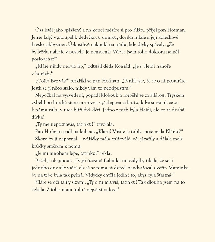 Nadčasový a zároveň dojemný příběh o děvčátku jménem Heidi, o dědečkovi Konrádovi, pasáčkovi Petrovi, kamarádce Kláře, stádečku koz a o nádherné přírodě pod alpskými hřebeny.