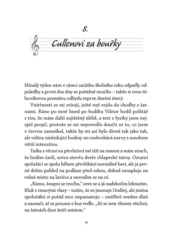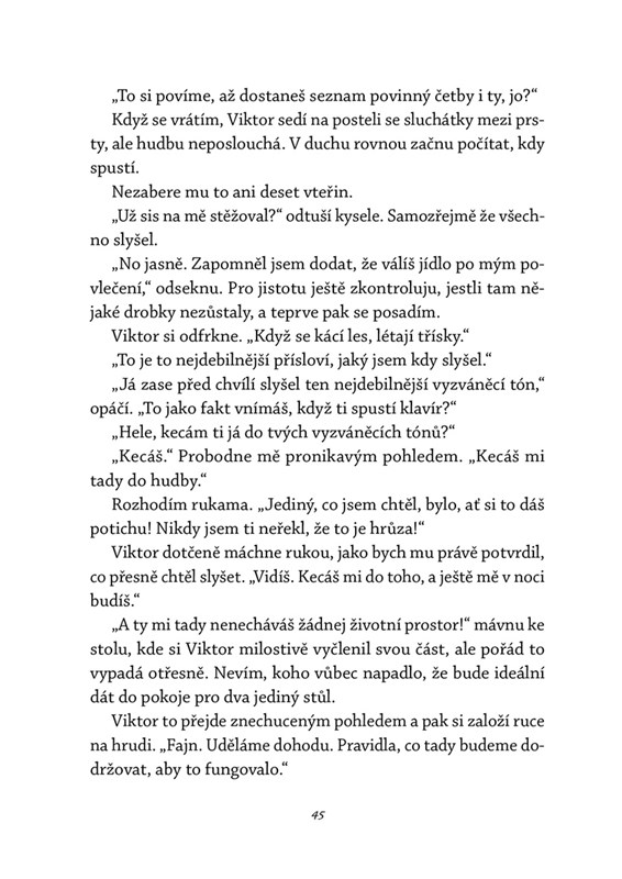 Dva kluci. Dvě minulosti. Jeden podzim, který je změní navždy. Na prestižním gymnáziu v Olomouci se potkávají Sam a Viktor, kteří na první pohled nemohou být odlišnější. Z počáteční nevraživosti však mezi nimi začíná vznikat křehké pouto. Jenže zatímco jeden se po přestupu na novou školu snaží začít znovu, druhý se pomalu propadá do stínů nevyřčeného traumatu. Mezi houslovými tóny se rozehrává příběh o důvěře, pochopení a hledání světla i tam, kde už ho skoro nečekáme.