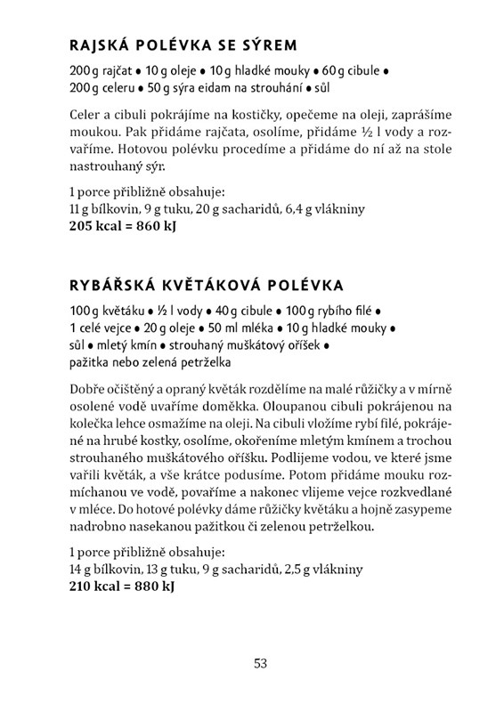 Kuchařka pro diabetiky s novým úvodem prof. Alexandry Jirkovské obsahuje 485 receptů, které jsou vhodné nejen pro diabetiky, ale též pro všechny, kteří se chtějí stravovat zdravě a chutně. Přehledným způsobem podává nejnovější zásady stravování při léčbě diabetu, kterými se ke svému prospěchu mohou řídit všichni milovníci racionálního způsobu stravování. Součástí receptů jsou kromě seznamu použitých surovin a popisu zpracování vždy též přepočty živin a potravin včetně jejich kalorických hodnot, díky nimž si každý může upravit jídelníček podle svých aktuálních potřeb. Oblíbená kuchařka vychází v nové grafické úpravě.