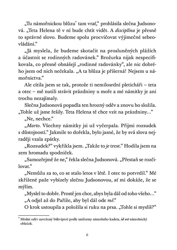 Marta by nejraději zůstala doma a věnovala se kriminálním případům. Teta Helena má však jiné plány – výlet k moři ve velkém stylu a rovnou luxusním vlakem! Cesta se však brzy změní v pořádně zapeklitý případ, když je ve vlaku nalezeno tělo – a v něm... tetiny nůžky. Místní policie selhává, Scotland Yard nikde a Marta ví, že pokud má být spravedlnosti učiněno zadost, musí jednat rychle. S pomocí kočky Pivoňky a guvernantky slečny Judsonové se tak rozjíždí pořádně ostré prázdniny!