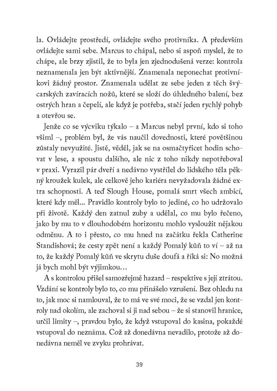 Catherine Standishová je ze všech Pomalých koní tím nejméně nápadným. Zažila toho dost na to, aby přestala věřit, že existuje něco jako náhoda. Takže když se stane obětí únosu, pochybuje, že by šlo o něco osobního. Musí za tím být Jackson Lamb, respektive jeho minulost. Ale ať už si o Lambovi myslíte cokoli, není to člověk, který by někoho ze svého týmu nechal na holičkách.