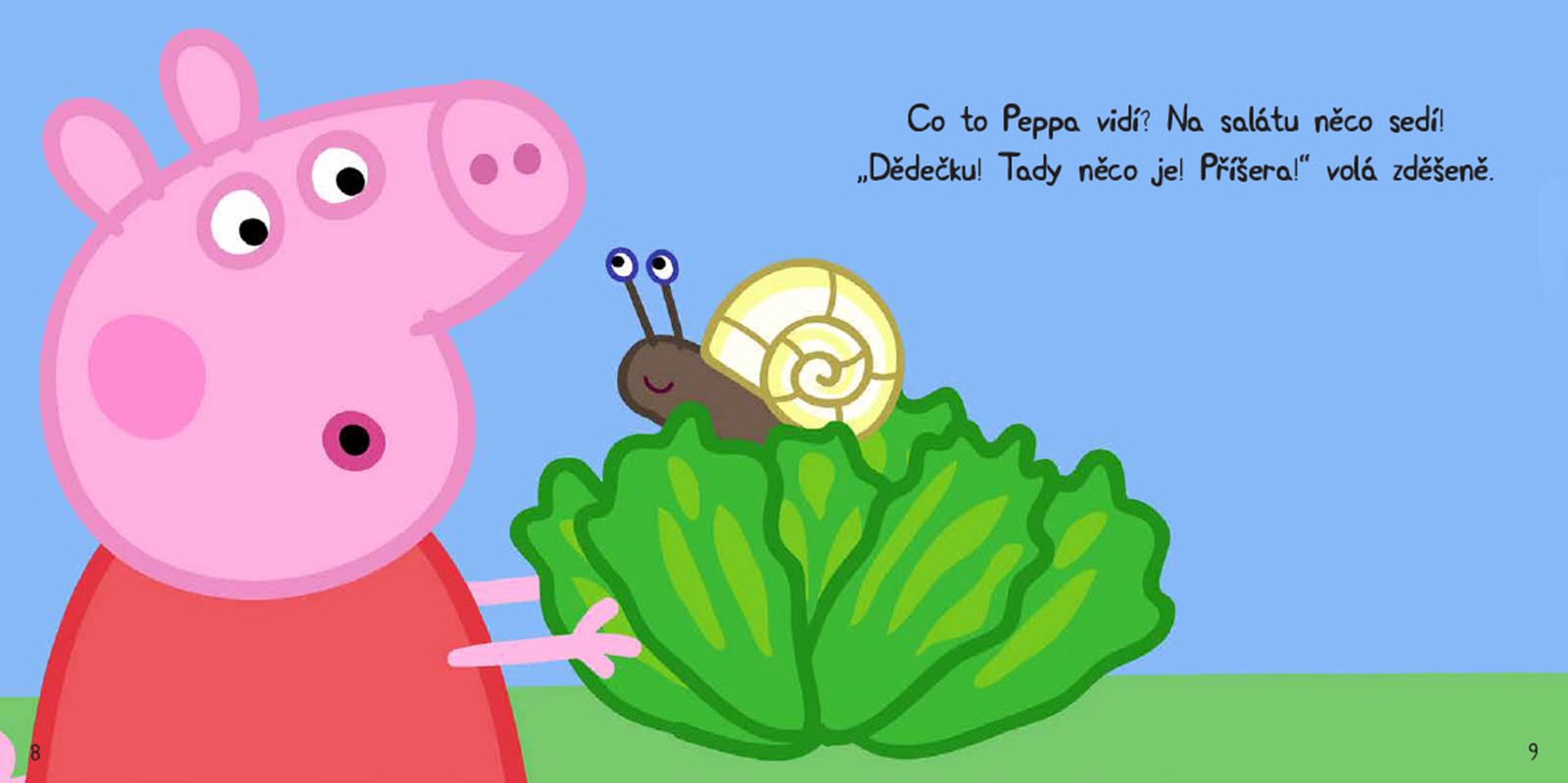 Peppa je malá prasečí holčička. S rodiči, bratříčkem Tomem, babičkou a dědečkem a spoustou kamarádů zažívá veselé příběhy. Pojďte si teď s námi přečíst o návštěvě dědečkovy zeleninové zahrádky, o maminčině rozbitém počítači, o koupání v bazénu a recyklování. Prima zábavu!