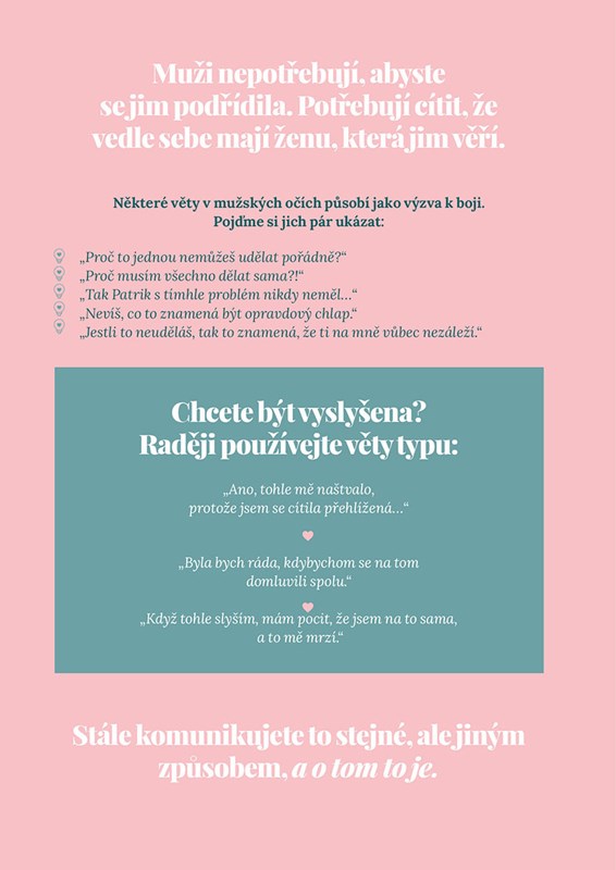 Tato kniha nabízí praktické nástroje pro rozvoj zdravého sebevědomí a emoční stability ve vztazích. Autorka, zkušená vztahová koučka a zakladatelka Vztahového Institutu, se opírá o poznatky z psychologie, partnerské terapie i své dlouholeté praxe. Skrze konkrétní příklady, cvičení a příběhy čtenáře provede cestou k pochopení vlastních vztahových vzorců a naučí je, jak přetvořit destruktivní dynamiky ve vztazích na respektující a rovnocenné partnerství.