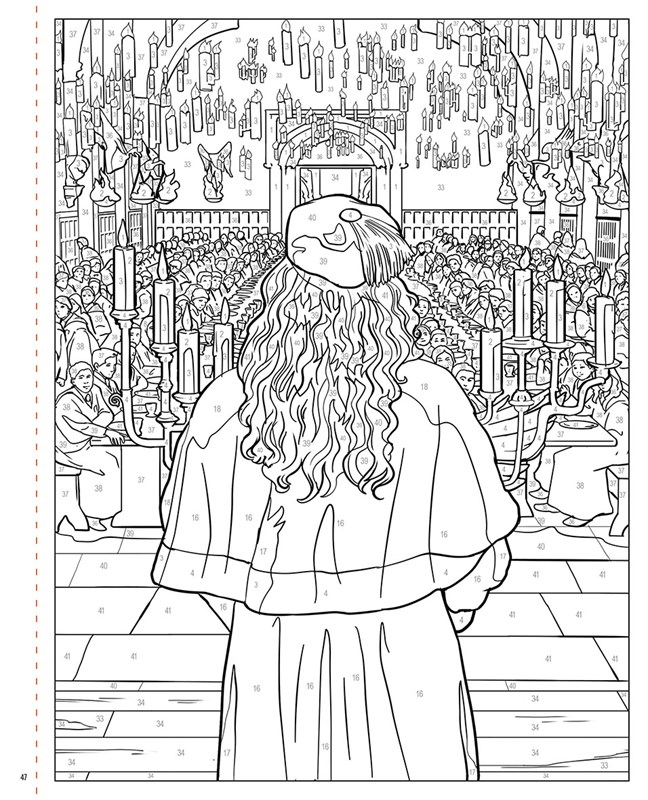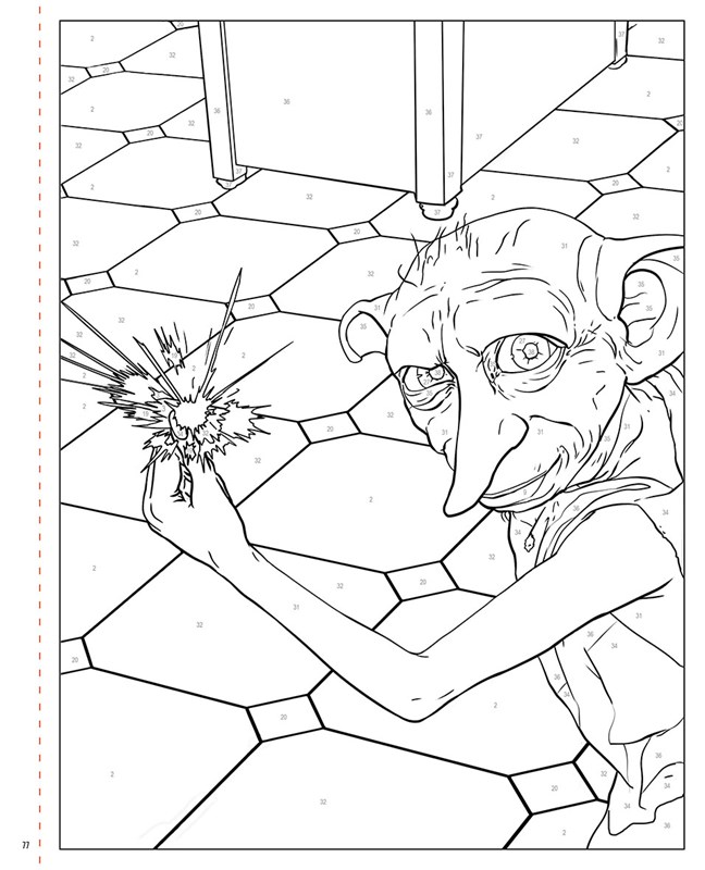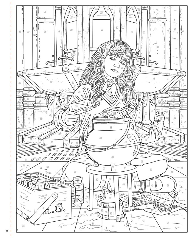Vzadu v knize najdeš barevný klíč, který přiřazuje číslům odstíny barev. Podle něj vybarvuj očíslované části obrázku a vytvářej úchvatné scény: od Harryho, jak létá na koštěti nad famfrpálovým hřištěm, přes Hermionu, která se cvičí v lektvarech, po Brumbála přednášejícího proslov ve Velké síni. Vybarvuj podle čísel a oživuj momenty z filmů o oblíbeném kouzelníkovi.