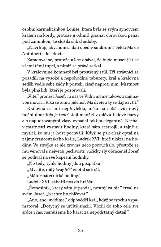 Marie Antoinetta tentokrát musí kromě organizace návštěvy svého bratra, rakouského císaře Josefa II., řešit i diplomatické ohrožení Francie. Neznámý zloděj totiž ukradl tajnou šifru umožňující kontakt s královskými špiony. Královna musí opět pověřit svoji oblíbenou krejčovou Rose Bertinovou a kadeřníka Léonarda Autiera, aby získali šifru zpět. Těm se ovšem do cesty postaví nečekaně rafinované ženy, z nichž jedna skončí v sudu s louhem a navíc: oblečená do svatebních šatů od královniny modistky! Zatímco si Rose a Léonard lámou hlavu nad dalšímí záhadnými úmrtími a hledají zloděje šifry, císař Josef II. dává své sestře Marii Antoinettě kázání o tom, že by Francie měla mít konečně následníka trůnu.