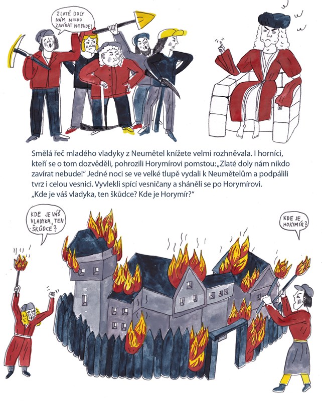 Za knížete Křesomysla rostly v Čechách jako houby po dešti doly na zlato a stříbro. Lidé omámeni mamonem přestali obdělávat pole a hrozil hladomor. Zastavit zlatou horečku se pokusil vladyka Horymír, za což si vysloužil trest smrti v žaláři na Vyšehradě. Jak se odtud spolu se svým koněm Šemíkem zázračně zachránil, vypráví další svazek edice Pražské legendy. Příběh z pera Ivy Pecháčkové bohatě ilustrovala úspěšná autorka komiksů Klára Břicháčková.